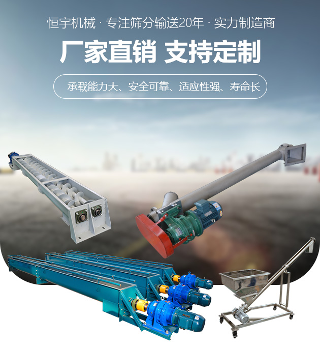 管式螺旋輸送機是各行業(yè)機械化運輸工作的主要機組,可使運輸工作減輕勞動強度,提高工作效率,應用范圍很廣.適用于各行業(yè),如建材、化工、電力、冶金、煤炭、糧食等行業(yè),適用于水平或傾斜輸送粉狀、粒狀和小塊狀物料,如煤、灰、渣、水泥、糧食等,物料溫度小于 200 ℃。螺旋機不適于輸送易變質(zhì)的、粘性大的、易結(jié)塊的物料.